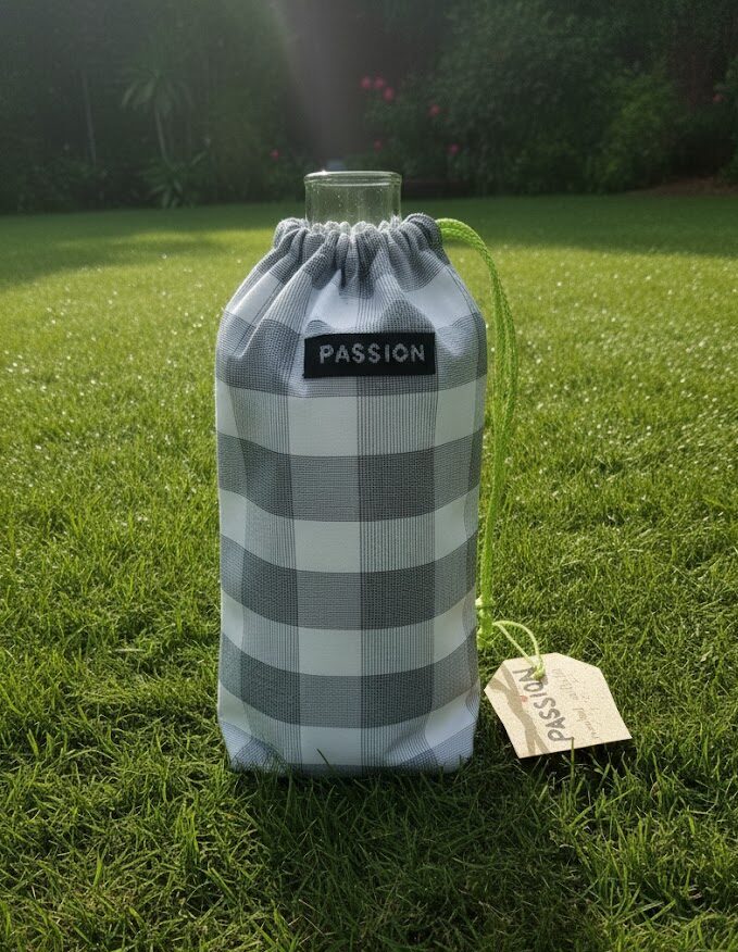 Be the first to review “Grey Checker Drawstring Bottle Bag”