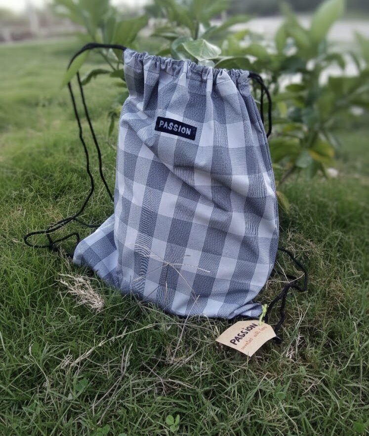 Article: Grey Checker Drawstring Bagpack Item no. 027